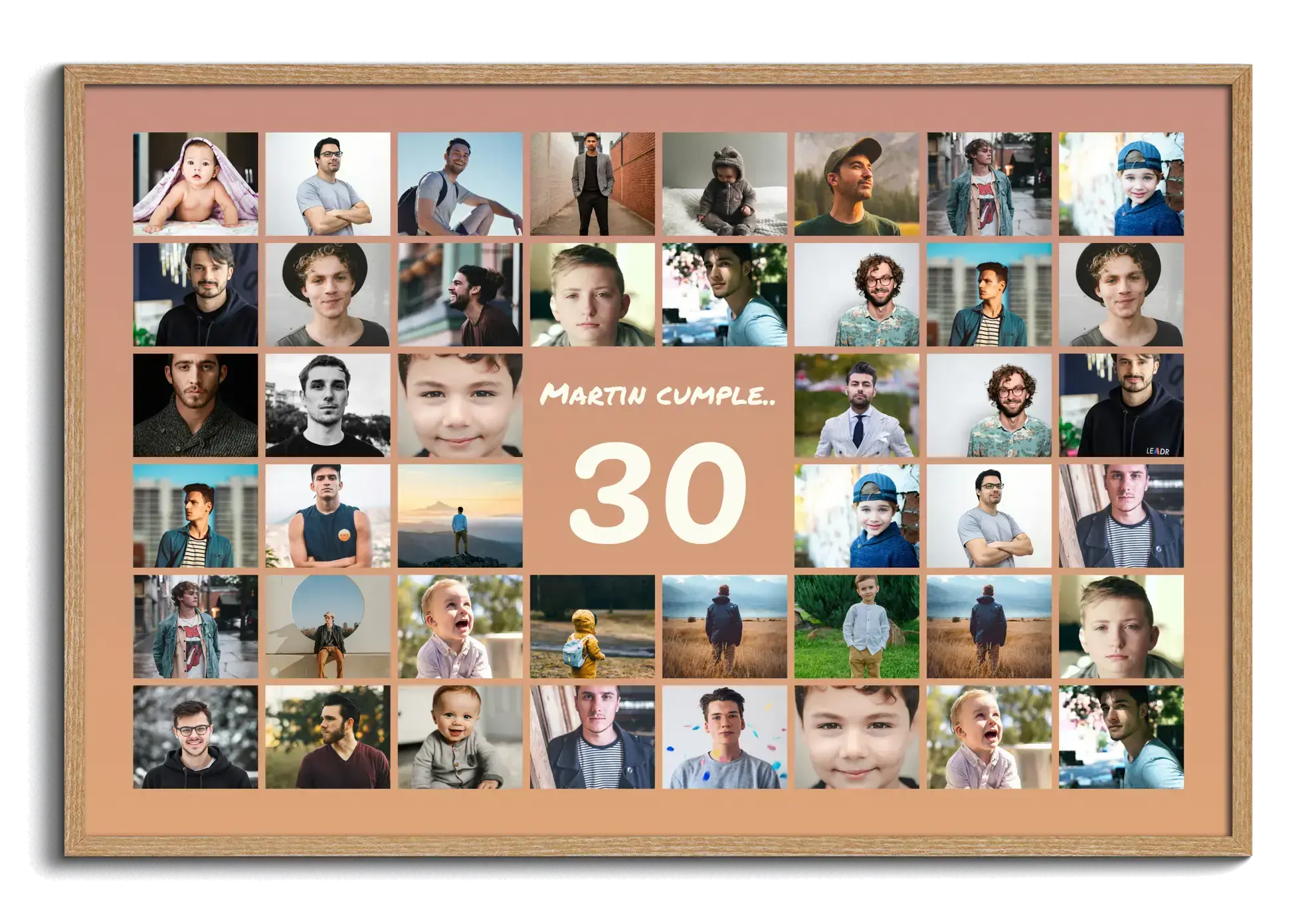 Collage número 30 con fotos: crea tu regalo 30 años - cumpleaños, aniversario, empresa