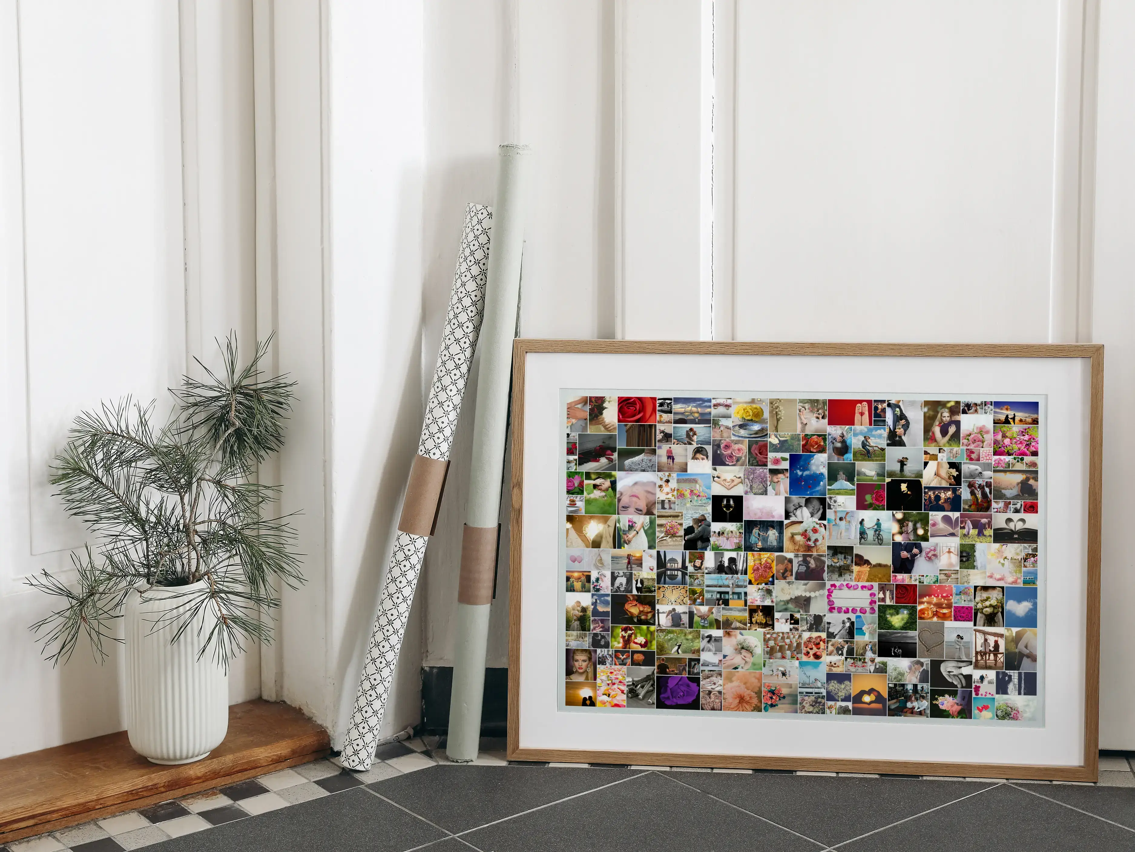 Collage nupcial con 200 fotos, creativa y emotiva. Perfecta como regalo o recuerdo único.