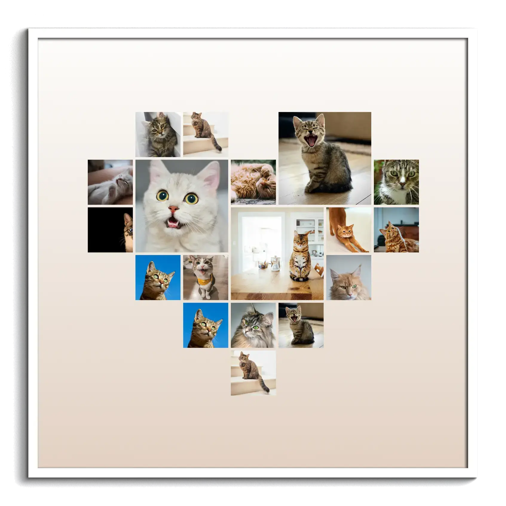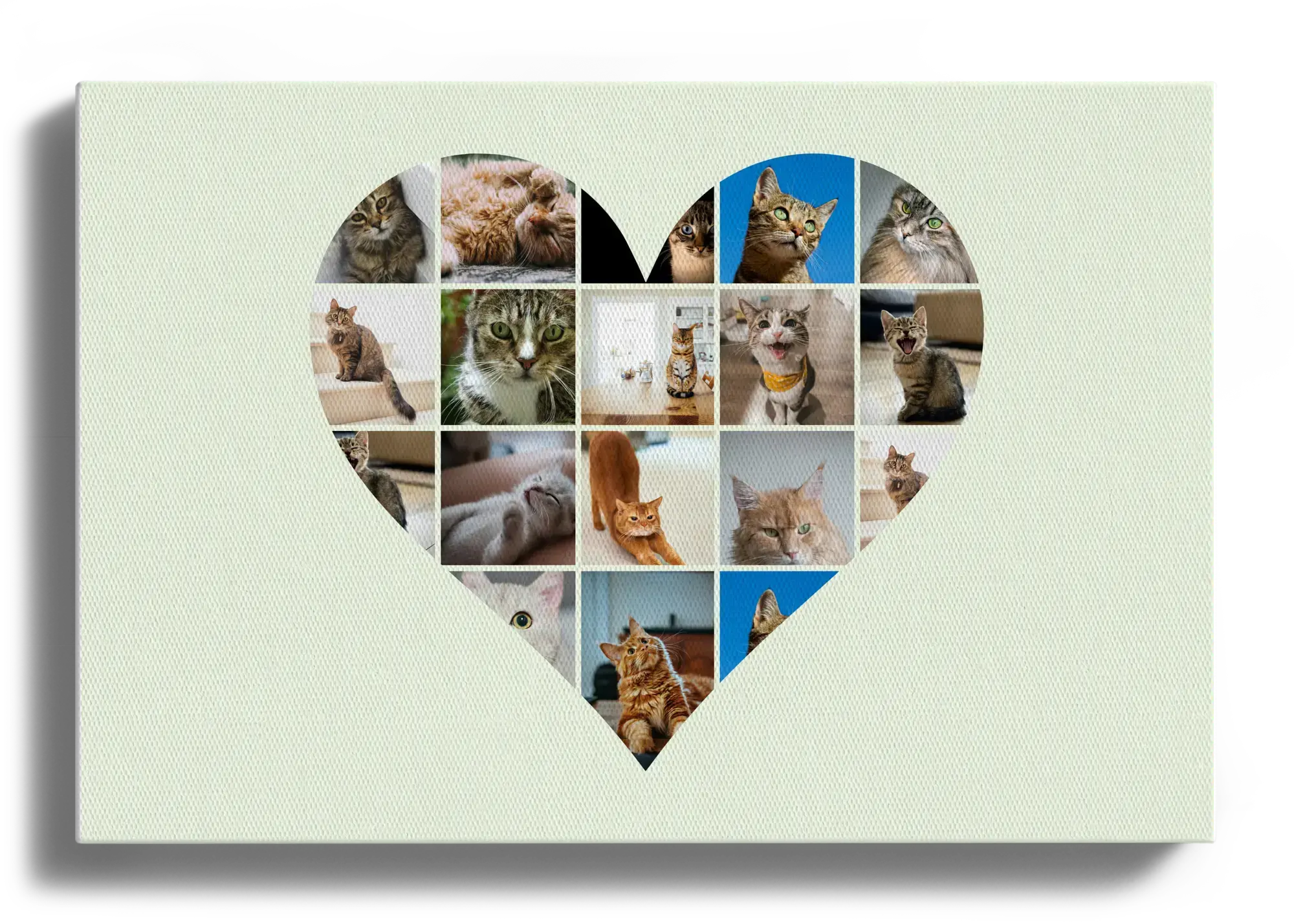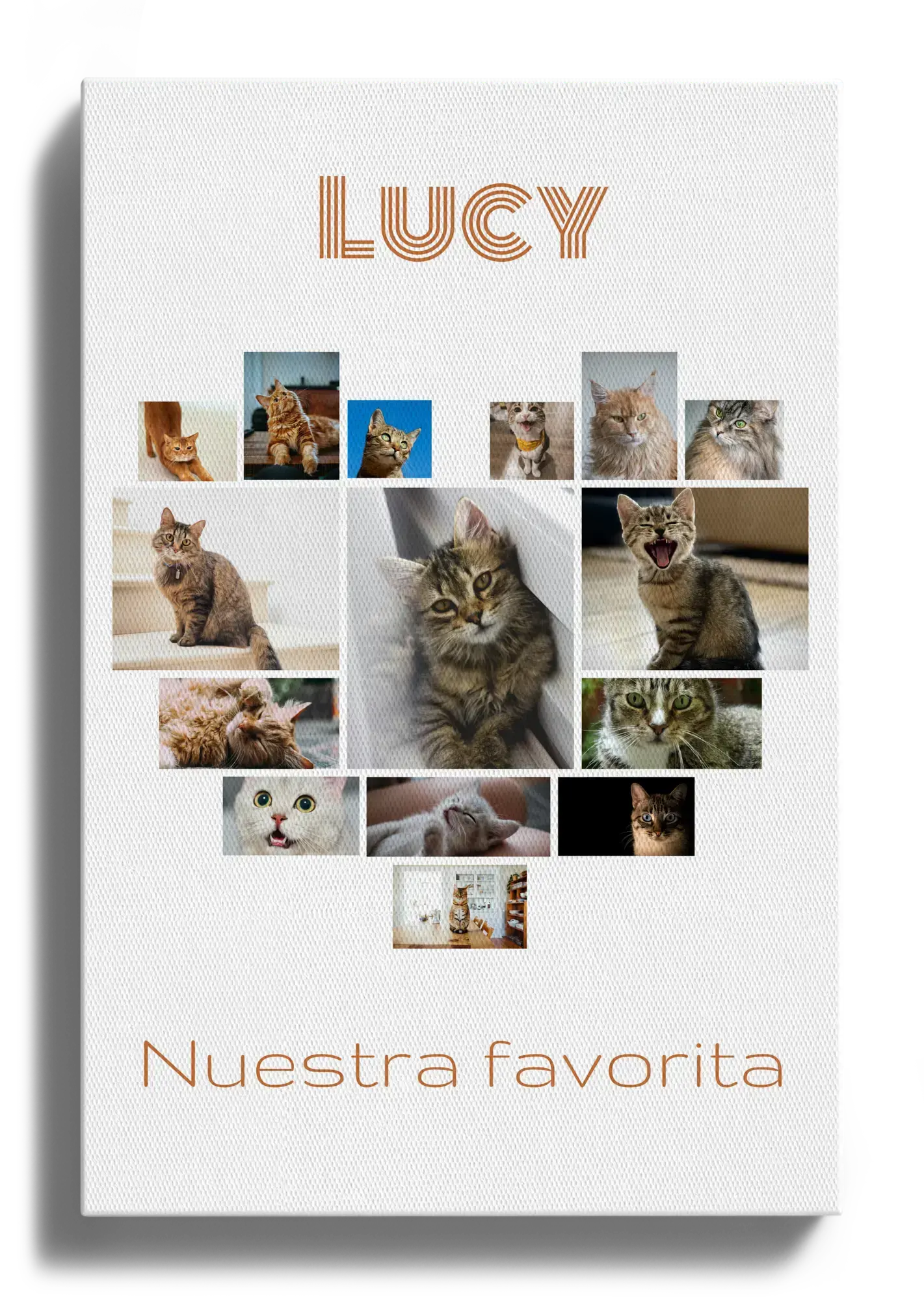 Collage corazón con fotos de tu gato: crea el tuyo con texto o nombre personalizado