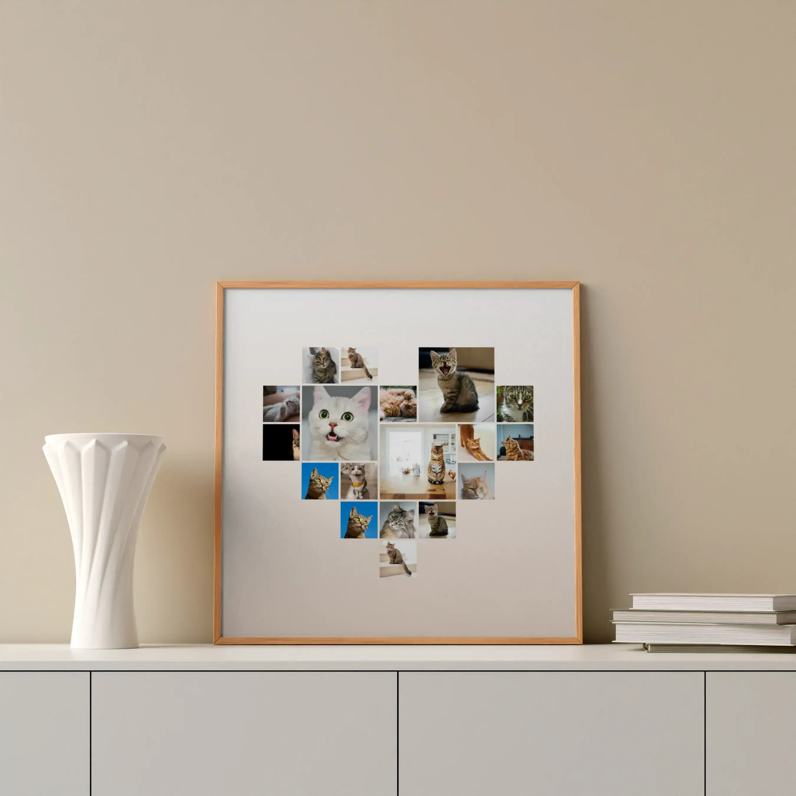 Collage corazón con fotos de tu gato: crea el tuyo con texto o nombre personalizado