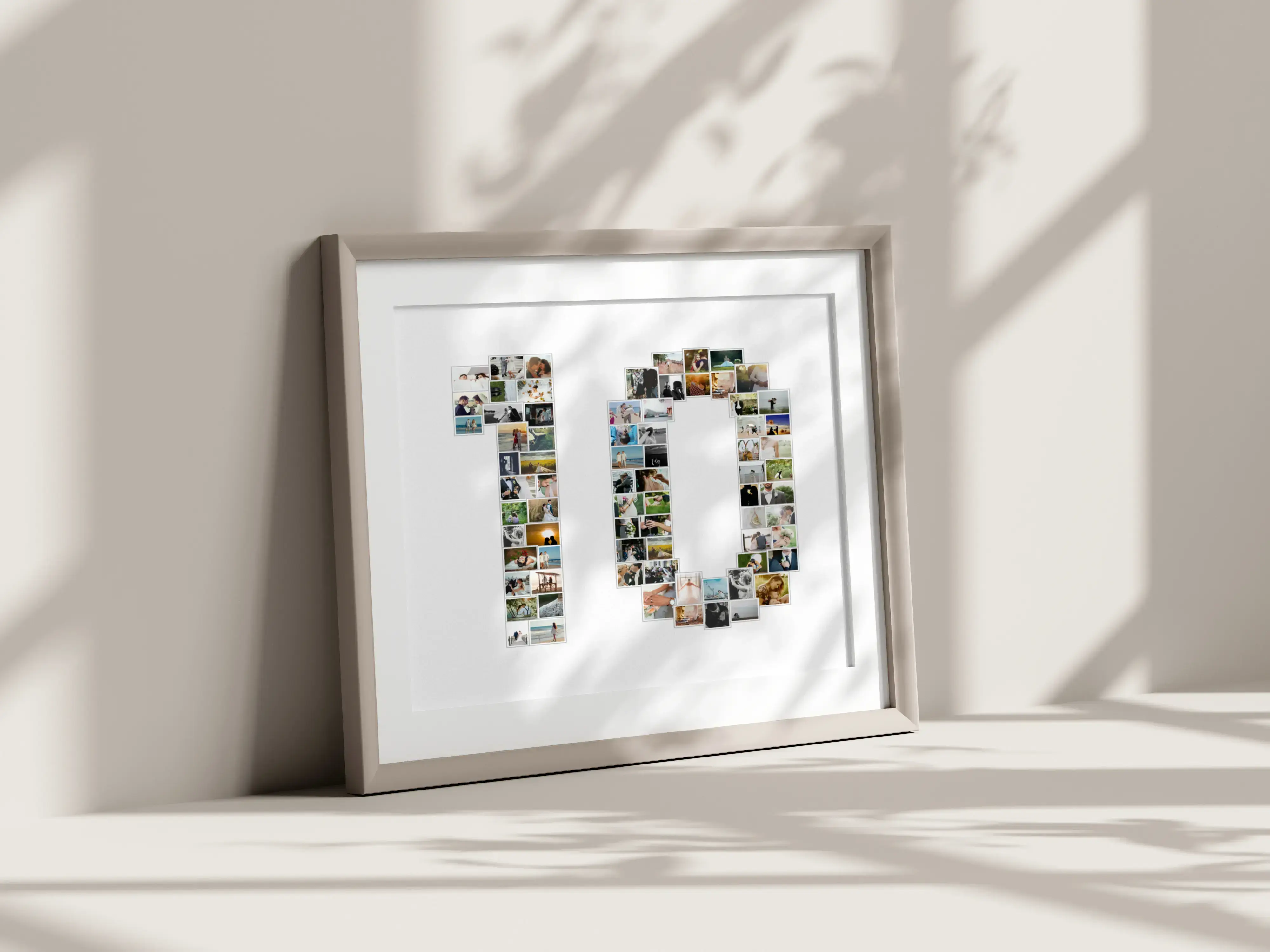 Crea un recuerdo inolvidable con nuestra fotocollage personalizable, perfecta para cualquier ocasión especial. Imagina tus momentos favoritos armoniosamente dispuestos formando el número 10, ideal para un aniversario de boda o un aniversario de empresa. Dependiendo de la plantilla elegida, puedes utilizar entre 1 y 100 fotos para crear una obra única destinada a emocionar.