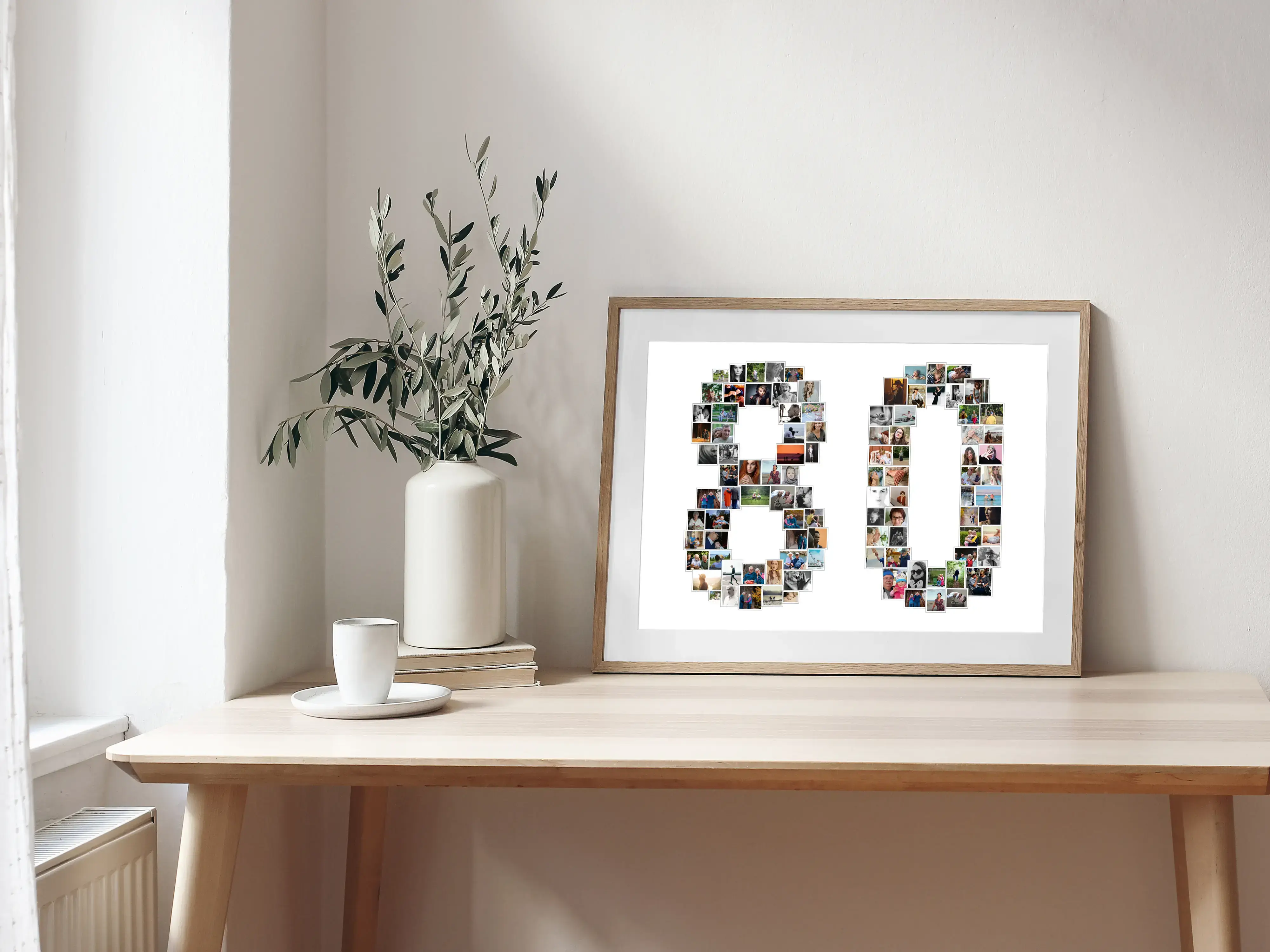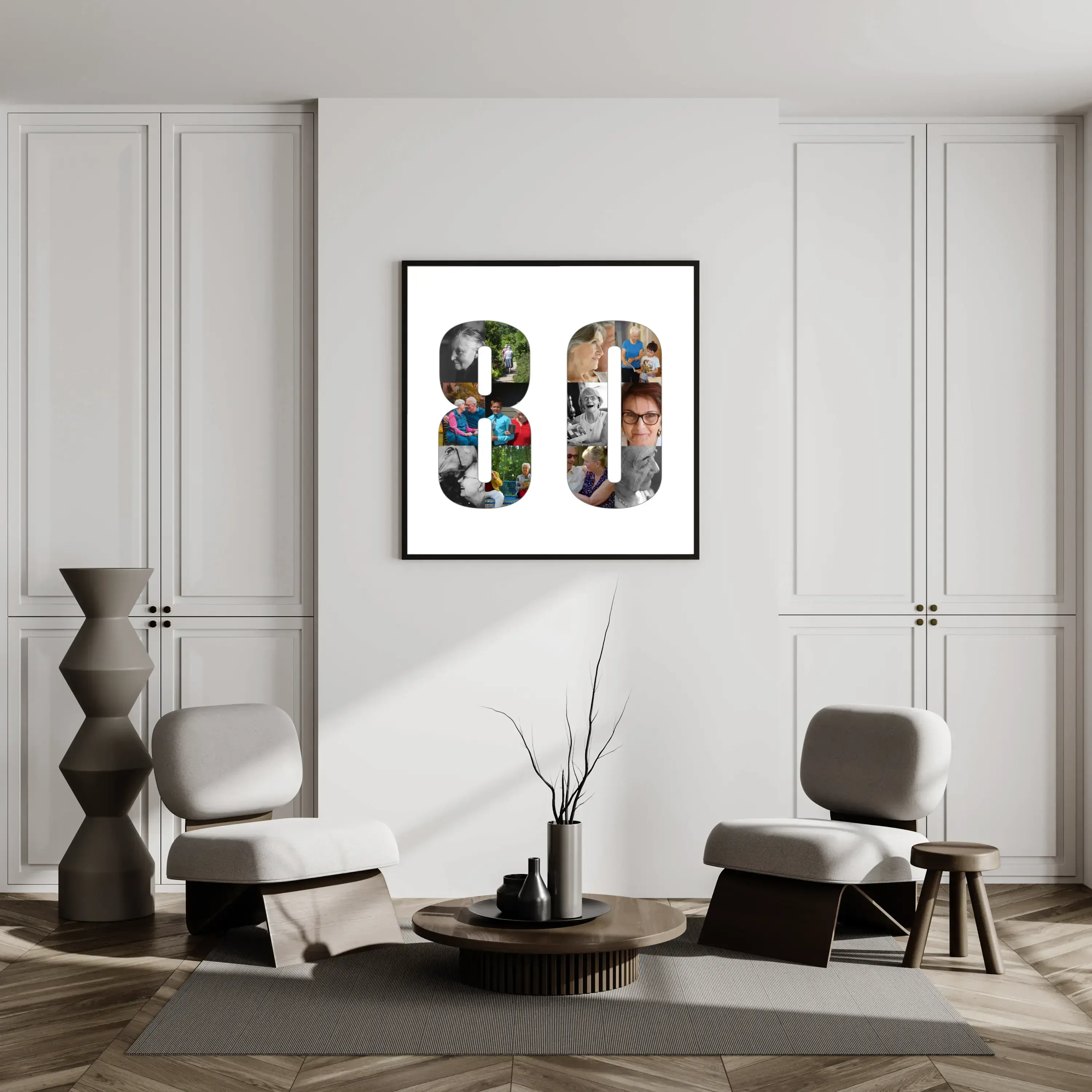 Celebra 80 años creando una collage única con tus fotos memorables. Ideal para regalar.
