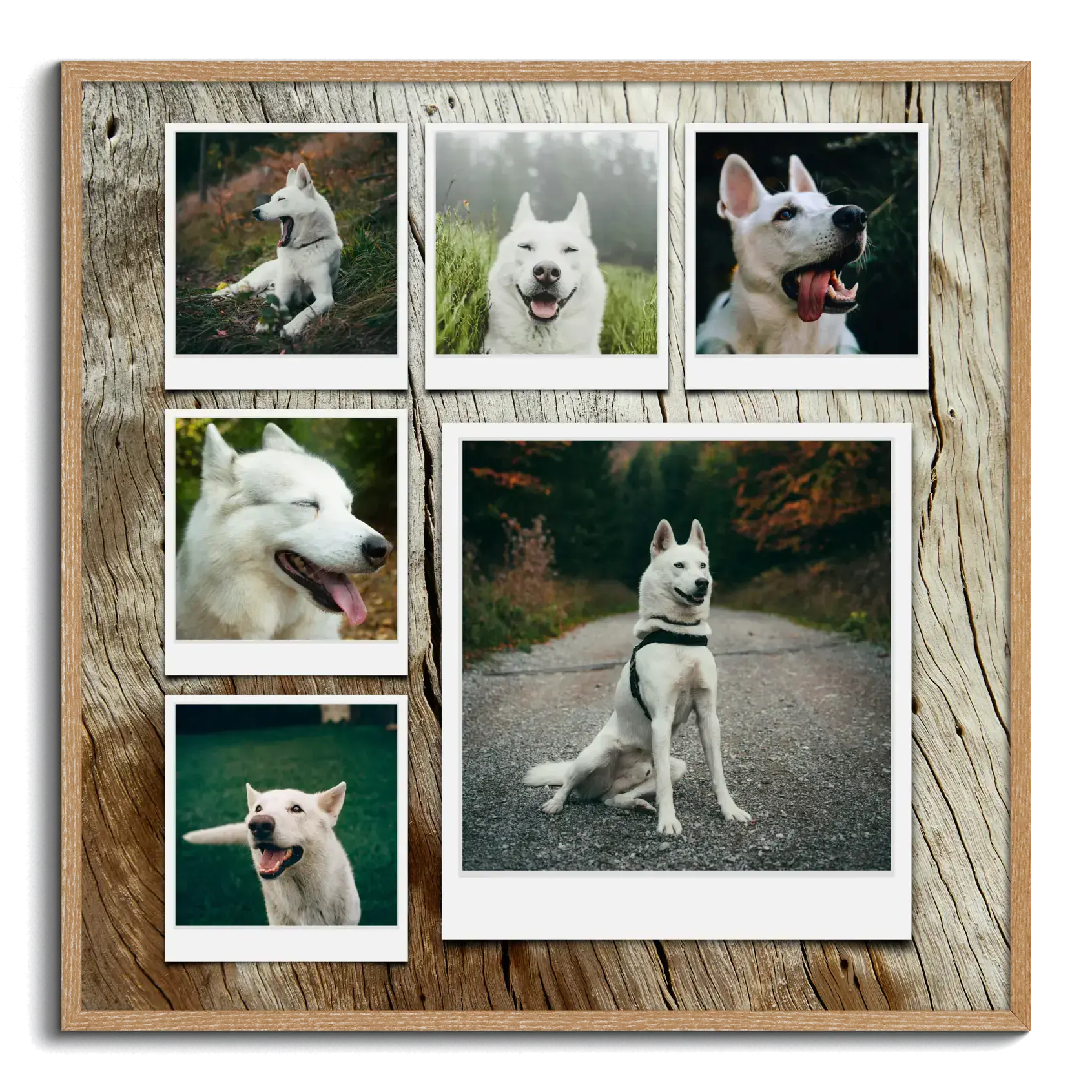 Crea tu collage de fotos de perro personalizada con estilo Polaroid y texto