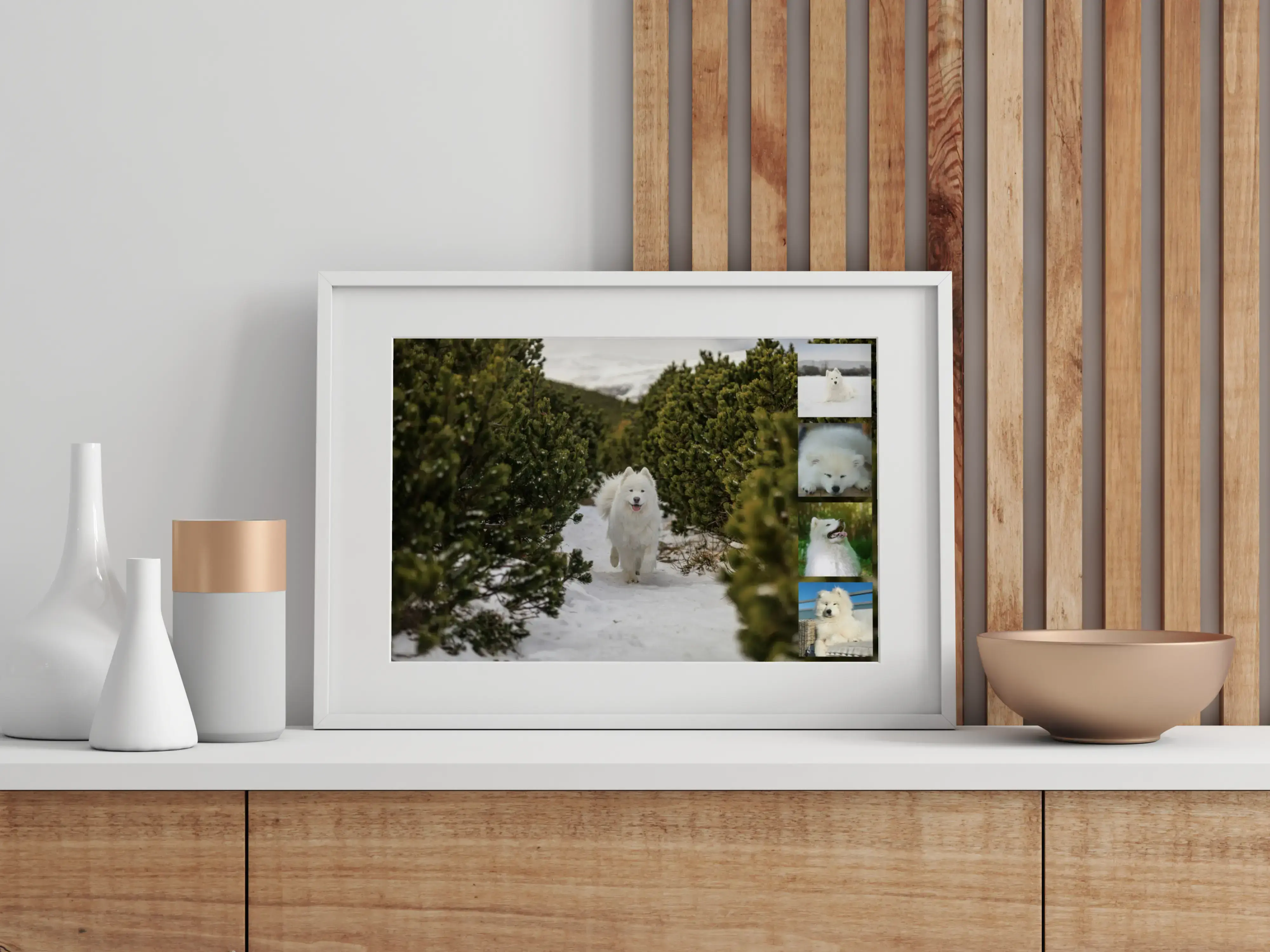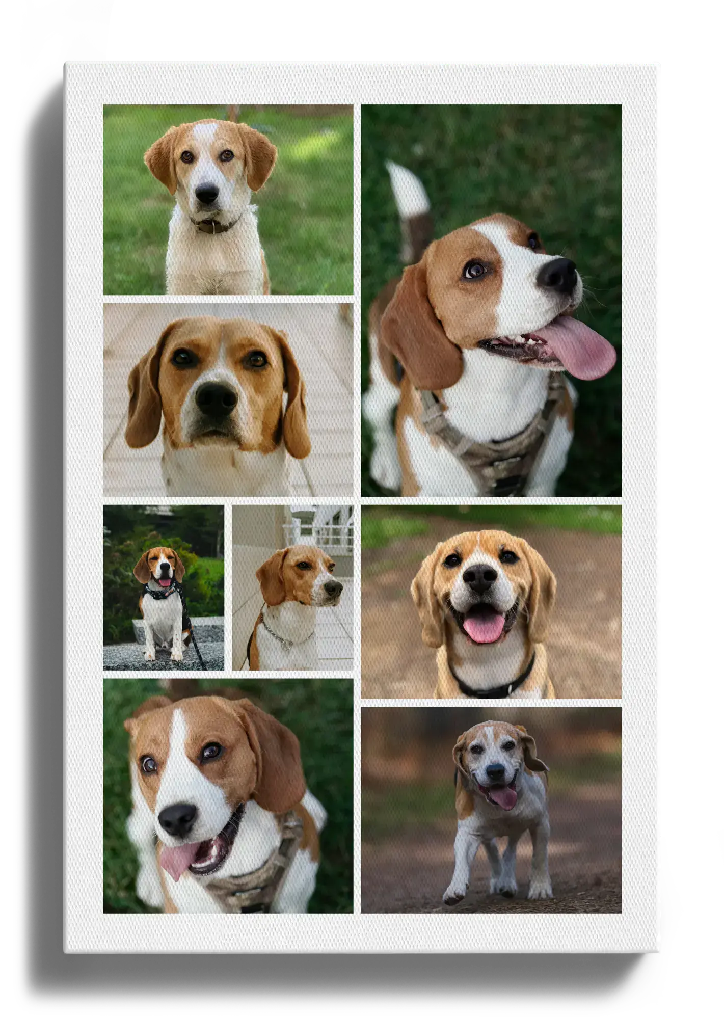 Esta fotocollage de perro es una idea preciosa para recordar a tu compañero de vida, celebrar un cumpleaños canino, decorar un rincón especial de casa o preparar un regalo con significado para alguien que adore a los animales. También encaja muy bien como detalle de adopción, recuerdo de un perro veterano o sorpresa para Navidad, aniversarios o mudanzas.
