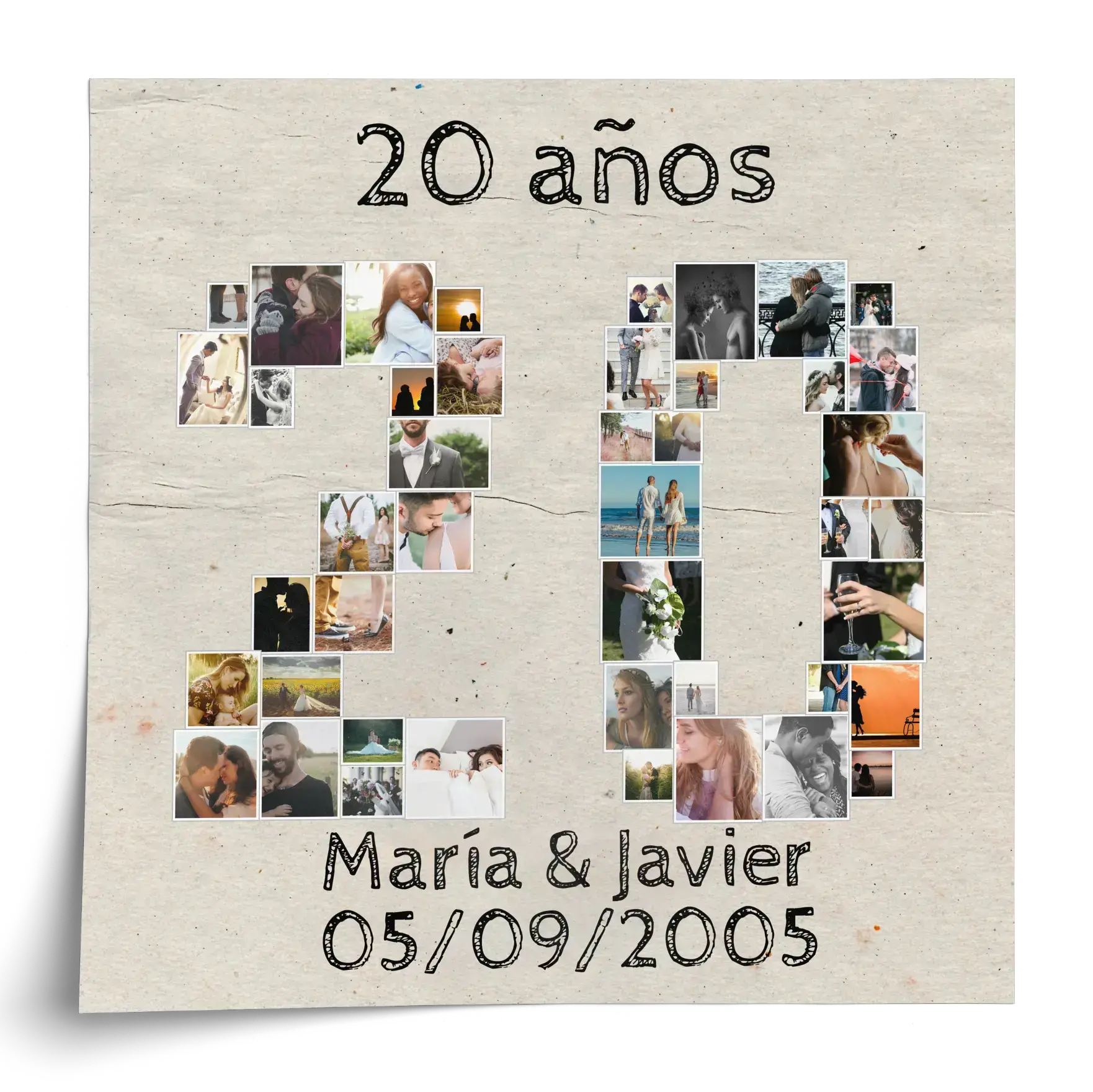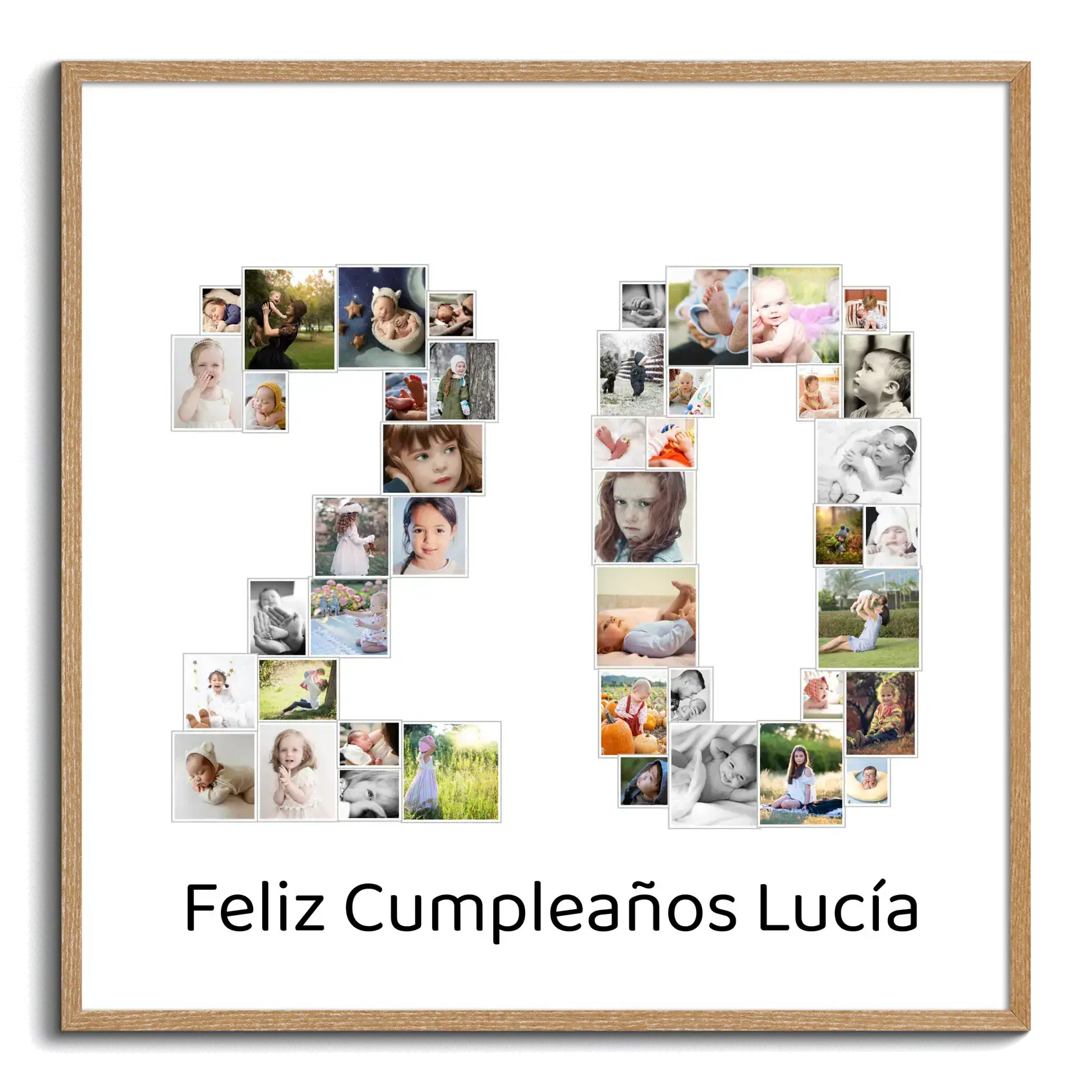 Collage número 20 con 1-100 fotos, ideal para cumpleaños, aniversarios y eventos especiales.