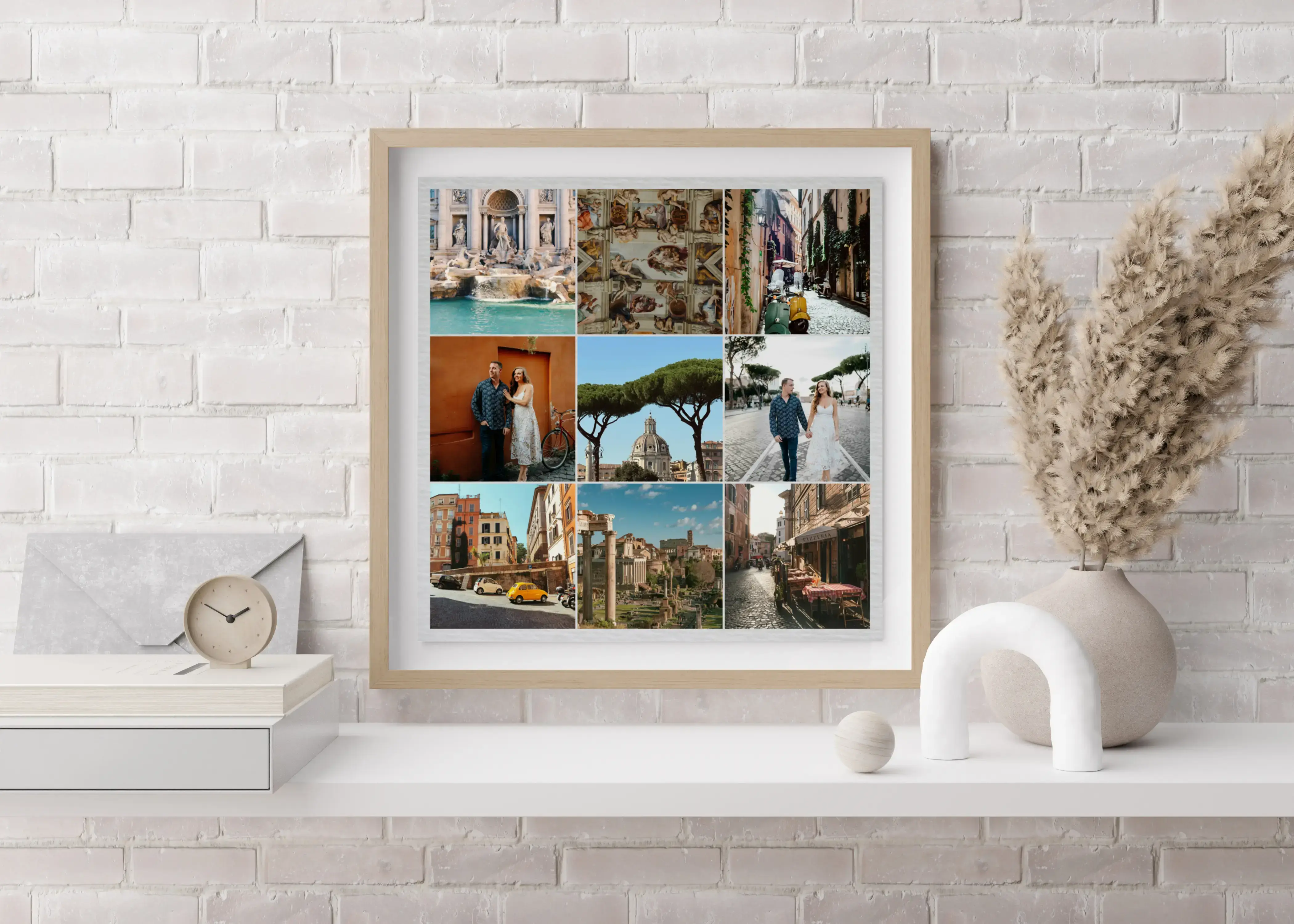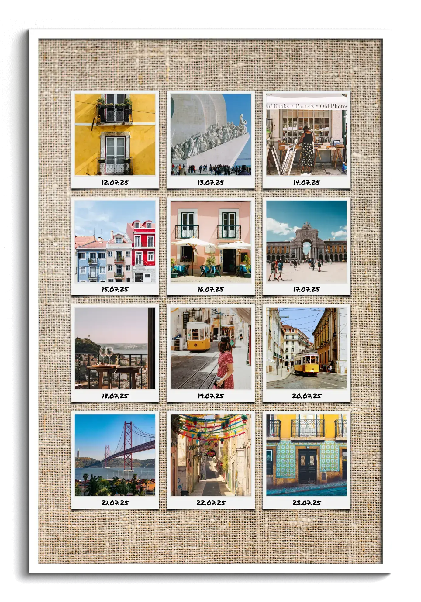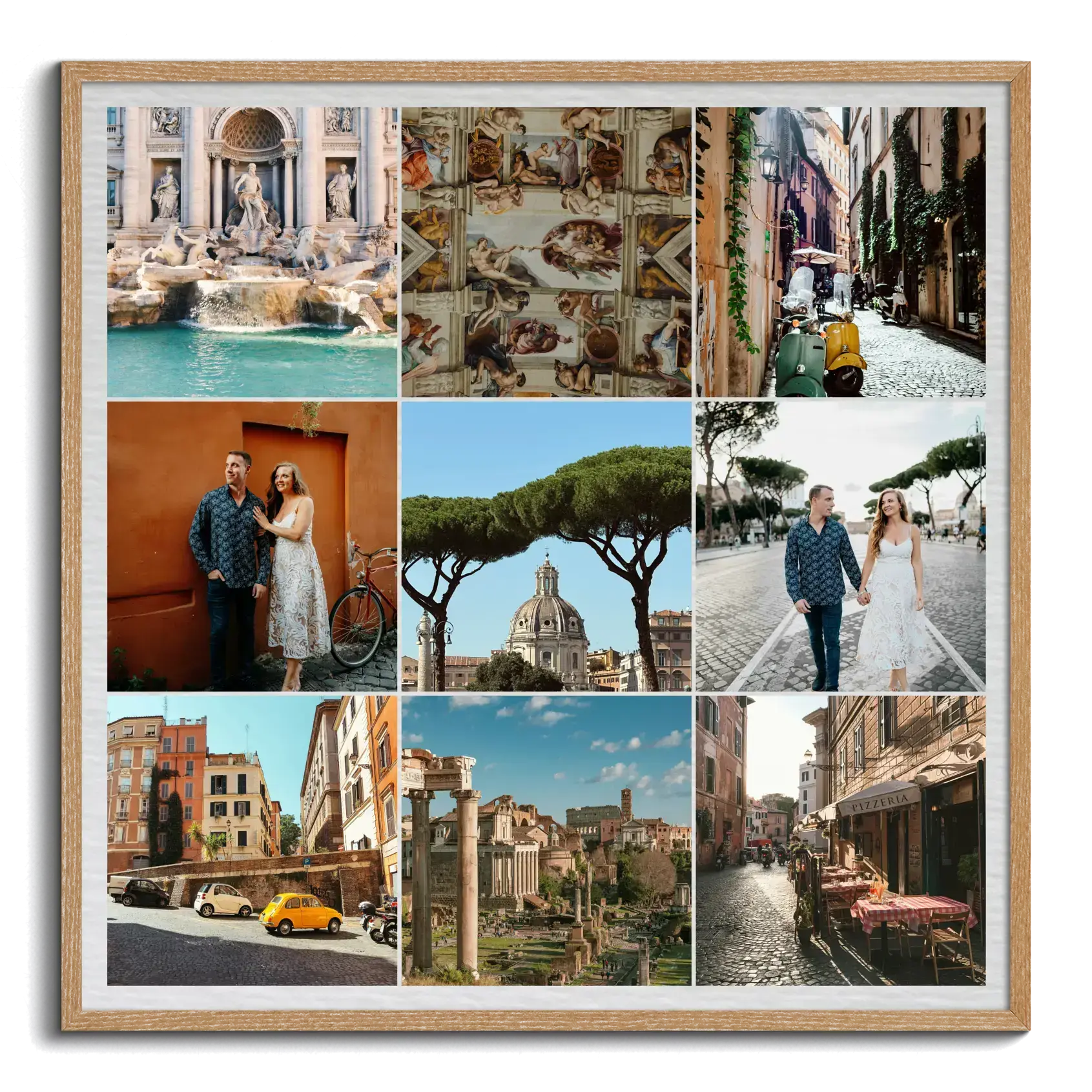Crea ahora tu composición de fotos de viajes y convierte tus recuerdos en un cuadro listo para pedir. Tus imágenes pueden mostrarse con fondos discretos o llamativos, con passepartout redondo para darles un aire especial, y también con o sin texto para indicar lugares, fechas o momentos.
