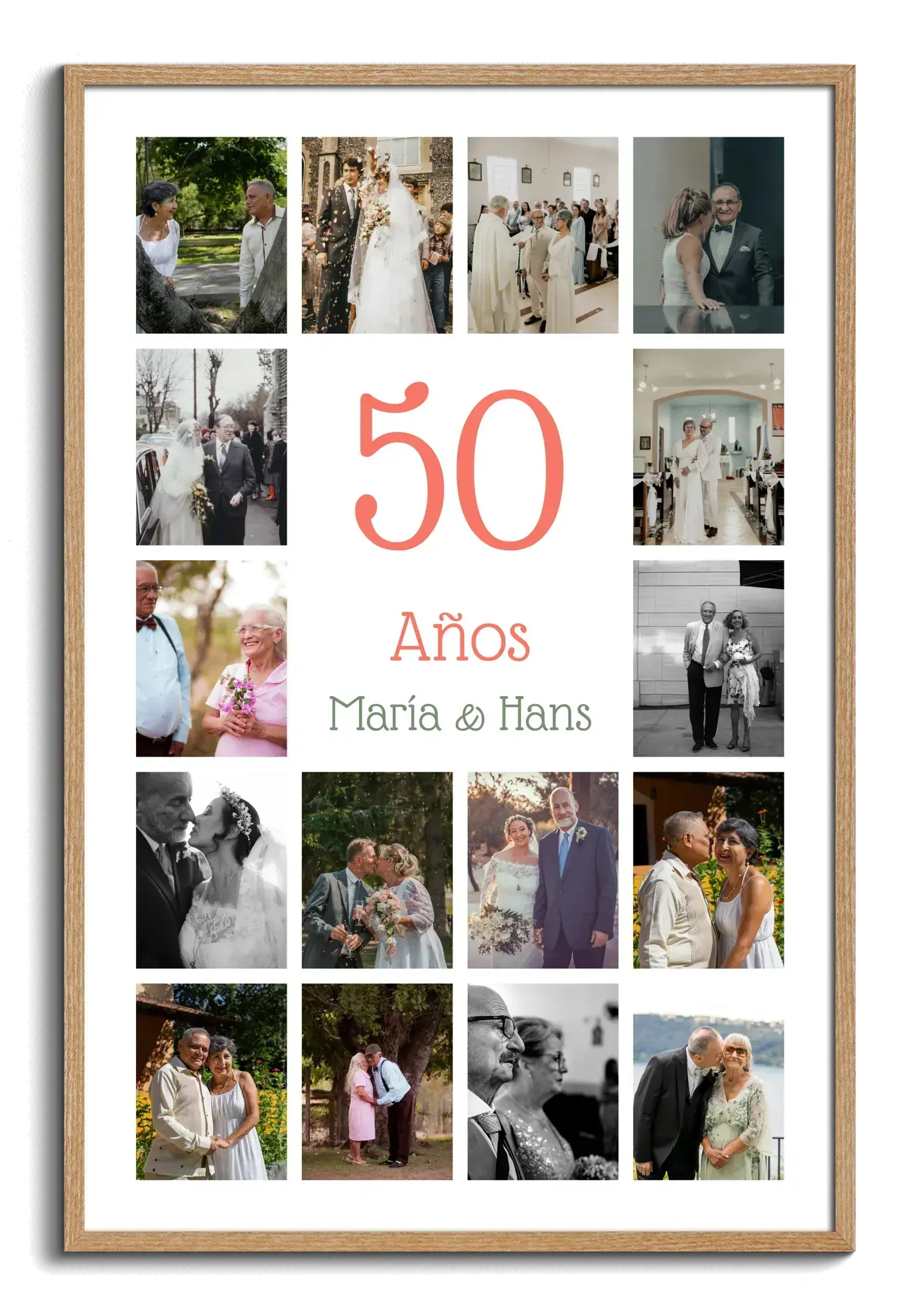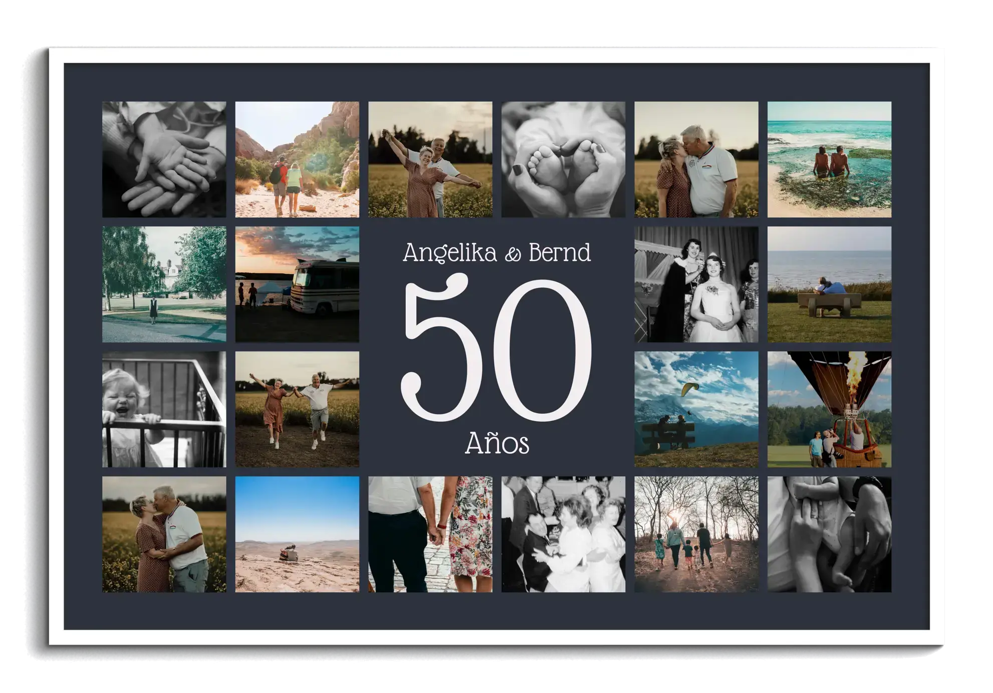 Collage con número para Bodas de Oro: diseña tu 50 con 20 a 80 fotos, nombres y texto