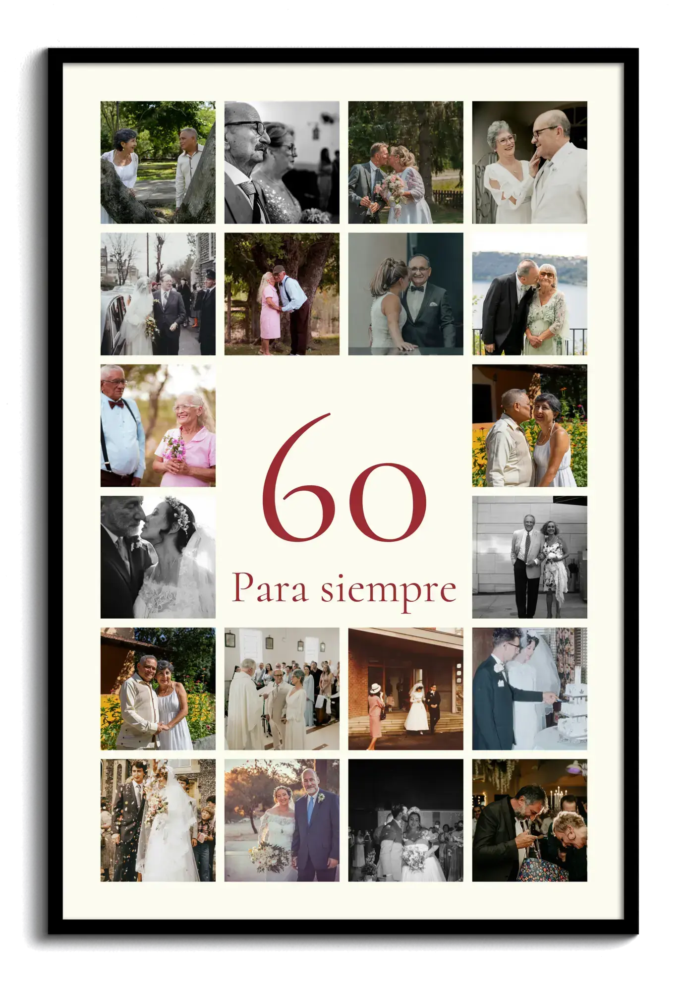 Crea tu collage número 60 con tus fotos: regala 60º cumpleaños o bodas de diamante