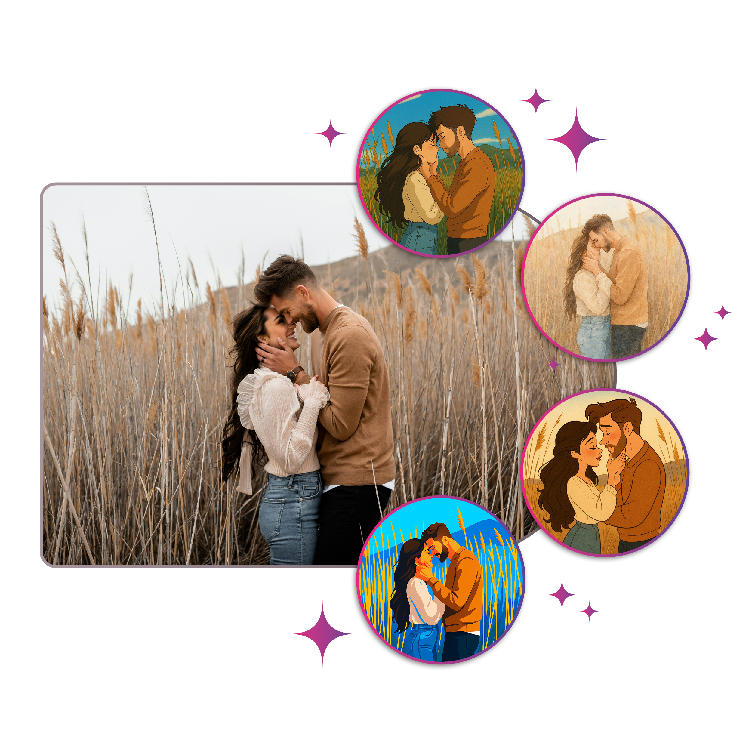 Elige entre varios estilos de IA – desde anime hasta acuarela. Los ejemplos te muestran cómo podría verse tu imagen con cada estilo.
