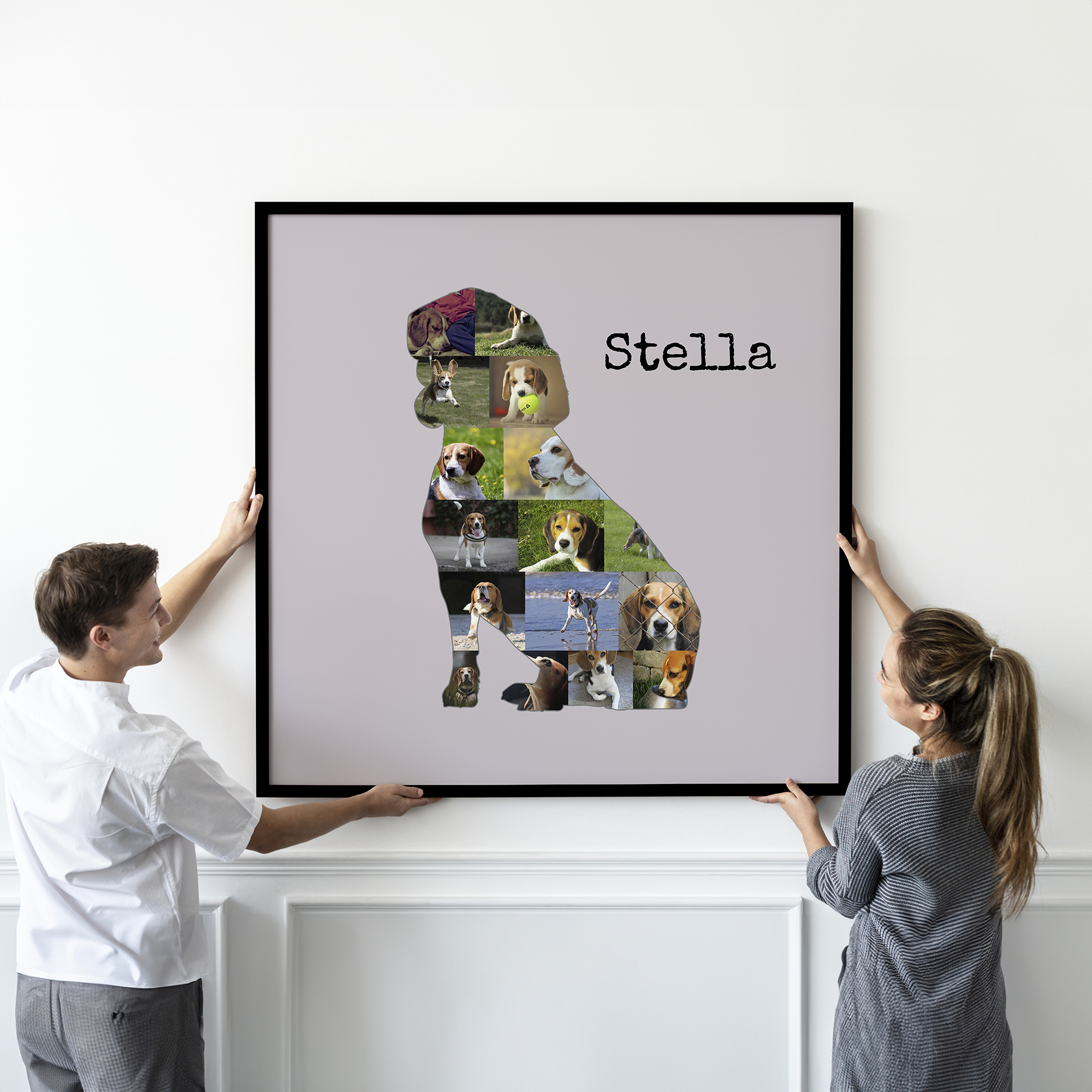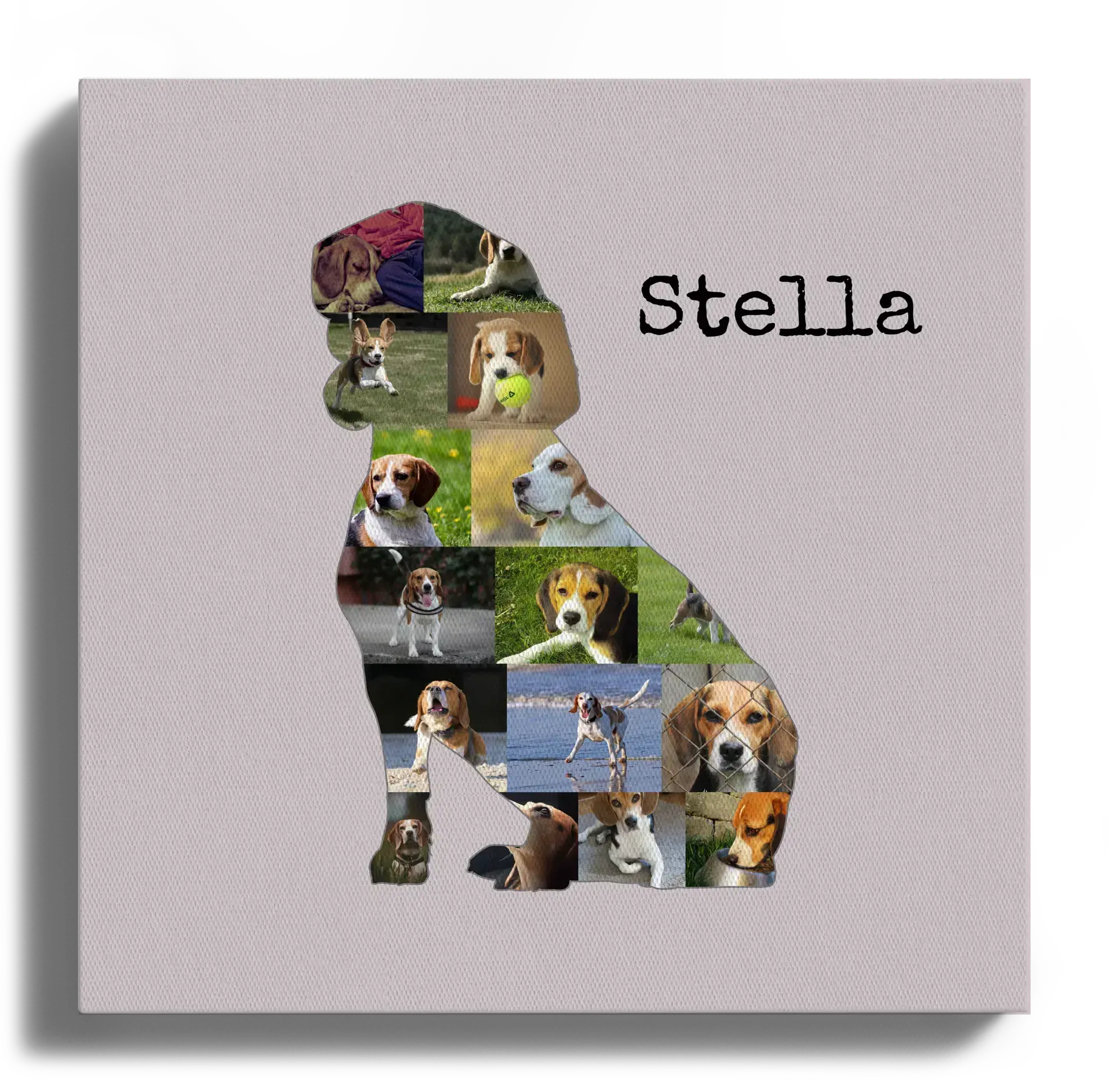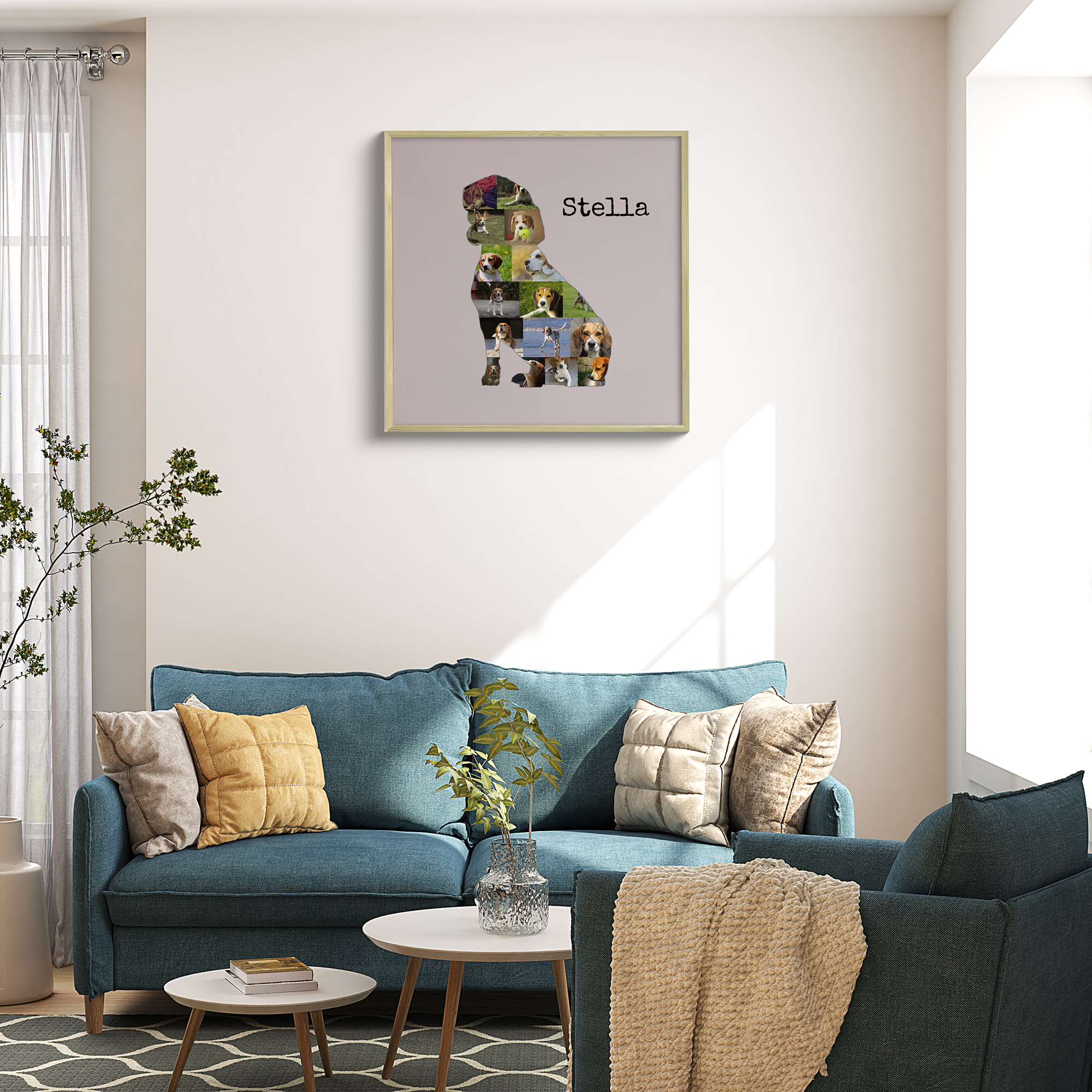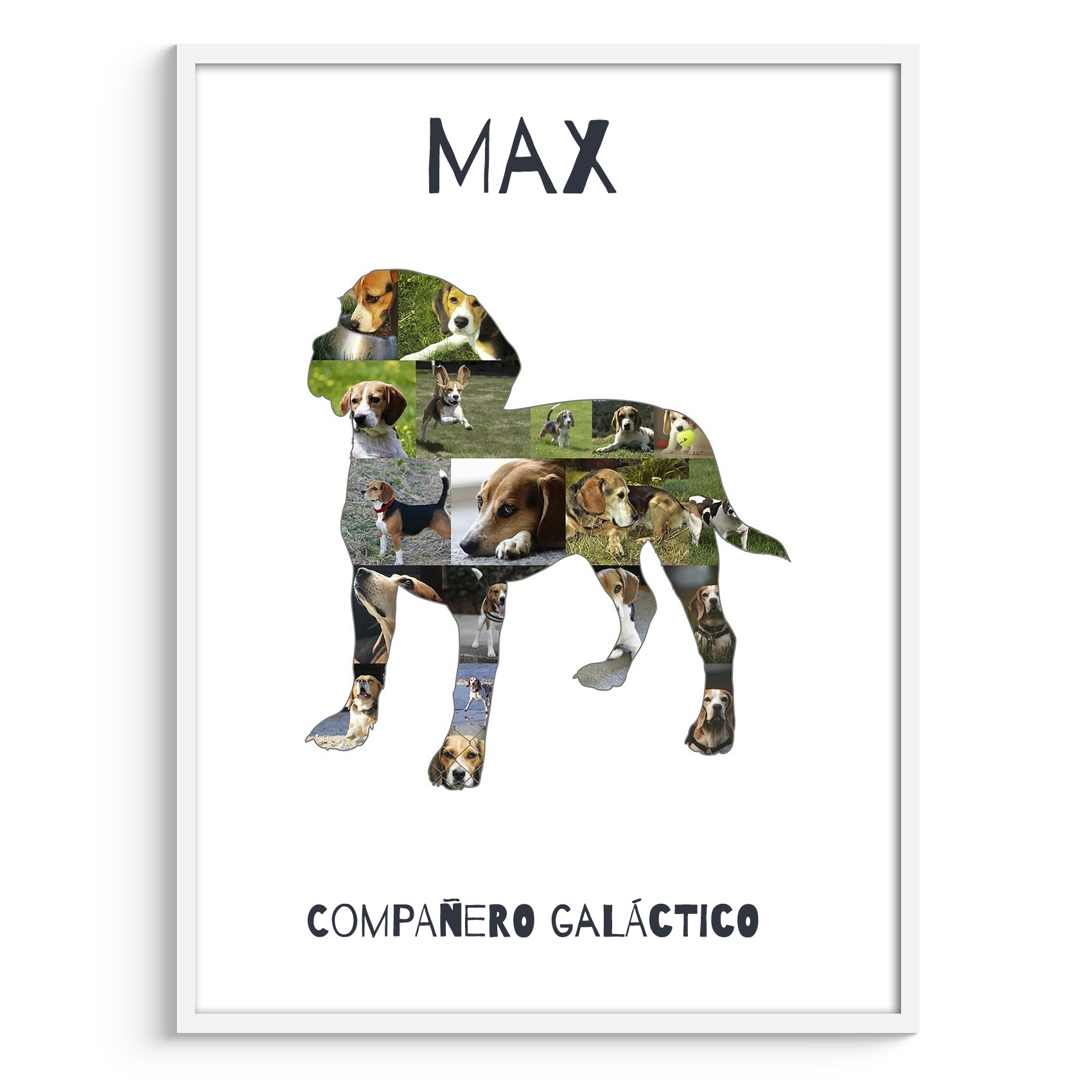 Collage Beagle: 15-20 fotos y texto personalizable para recordar a tu fiel compañero.