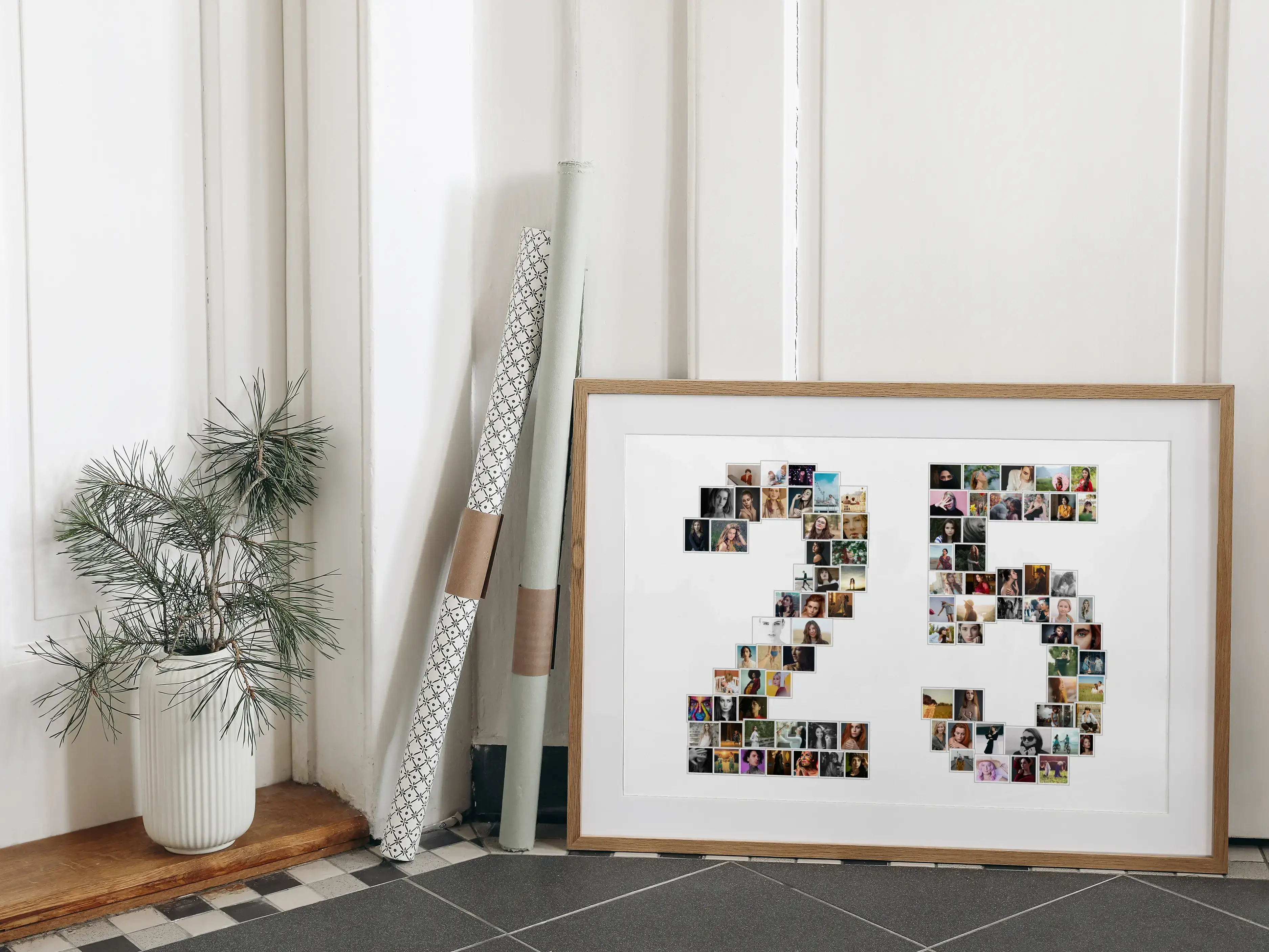 Personaliza tus recuerdos de manera única con nuestra increíble fotocollage. Imagina una composición especial como el número '25', perfecta para celebrar ocasiones como bodas de plata o aniversarios de empresa. Puedes elegir entre 1 y 100 fotos para darle un toque personal y emotivo a cada detalle.
