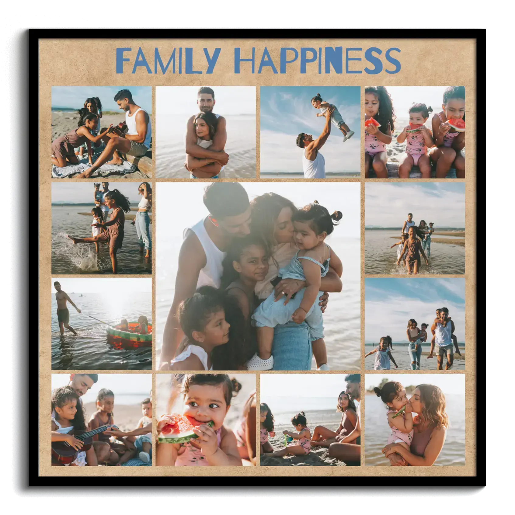 Fotos familiares en plantillas de collage de fotos con textos personalizados como Family Happiness