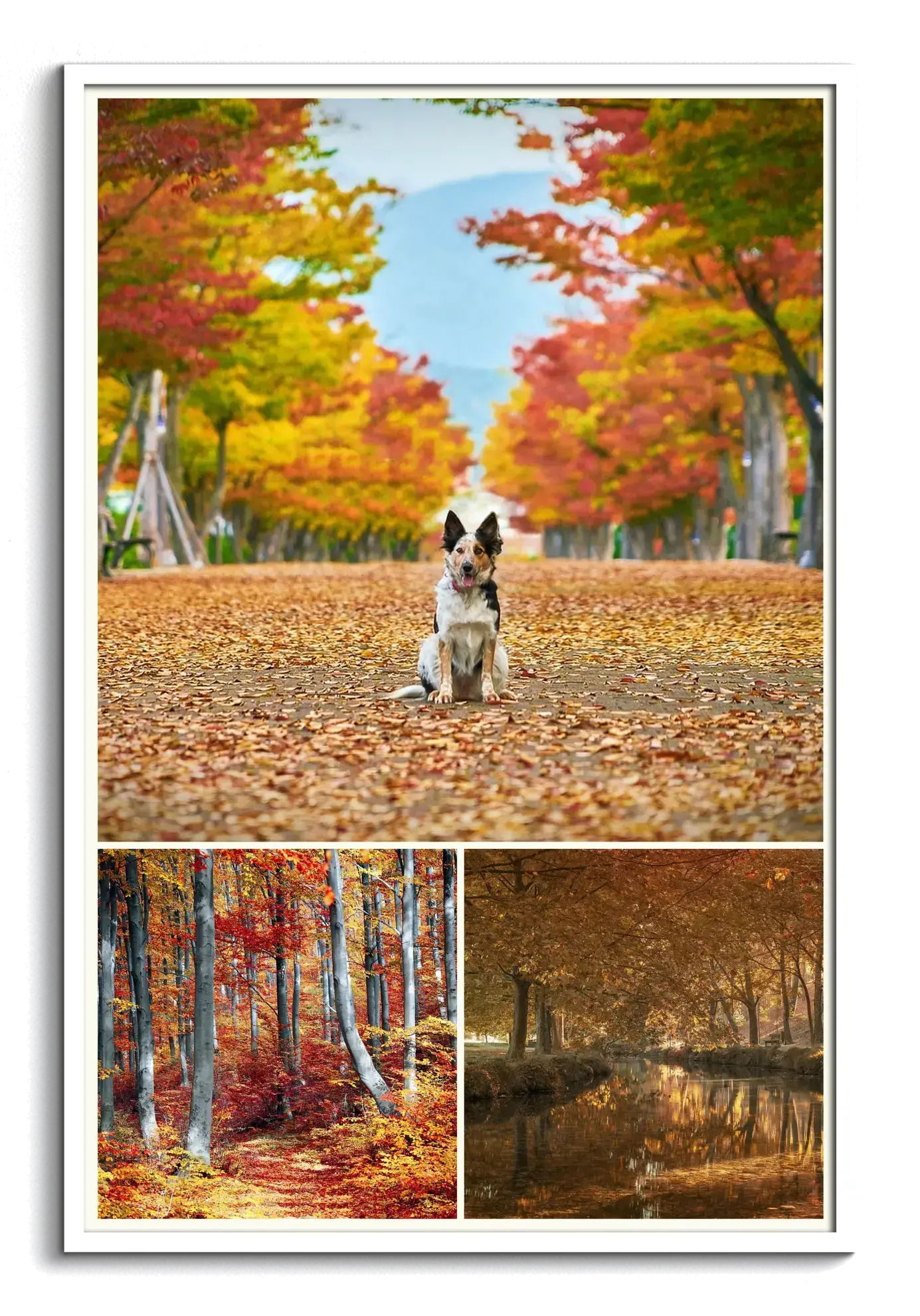 Explora nuestra web y personaliza tu propia fotocollage en diferentes tamaños con tus fotos favoritas. Imagina combinar tus paisajes otoñales y recuerdos familiares en estilos únicos. Añade textos personalizados como Fall Vibes para crear un recuerdo inolvidable que refleje la calidez del otoño y el cariño de tus momentos especiales.