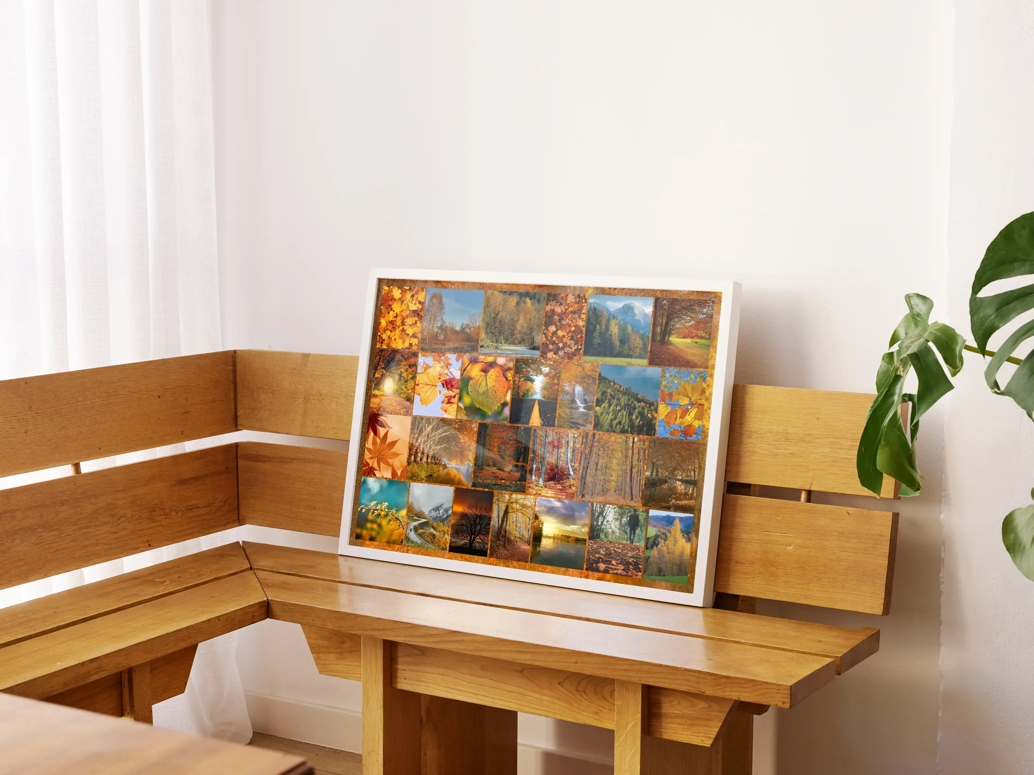 Captura el otoño en collages únicos con paisajes familiares y textos personalizados.