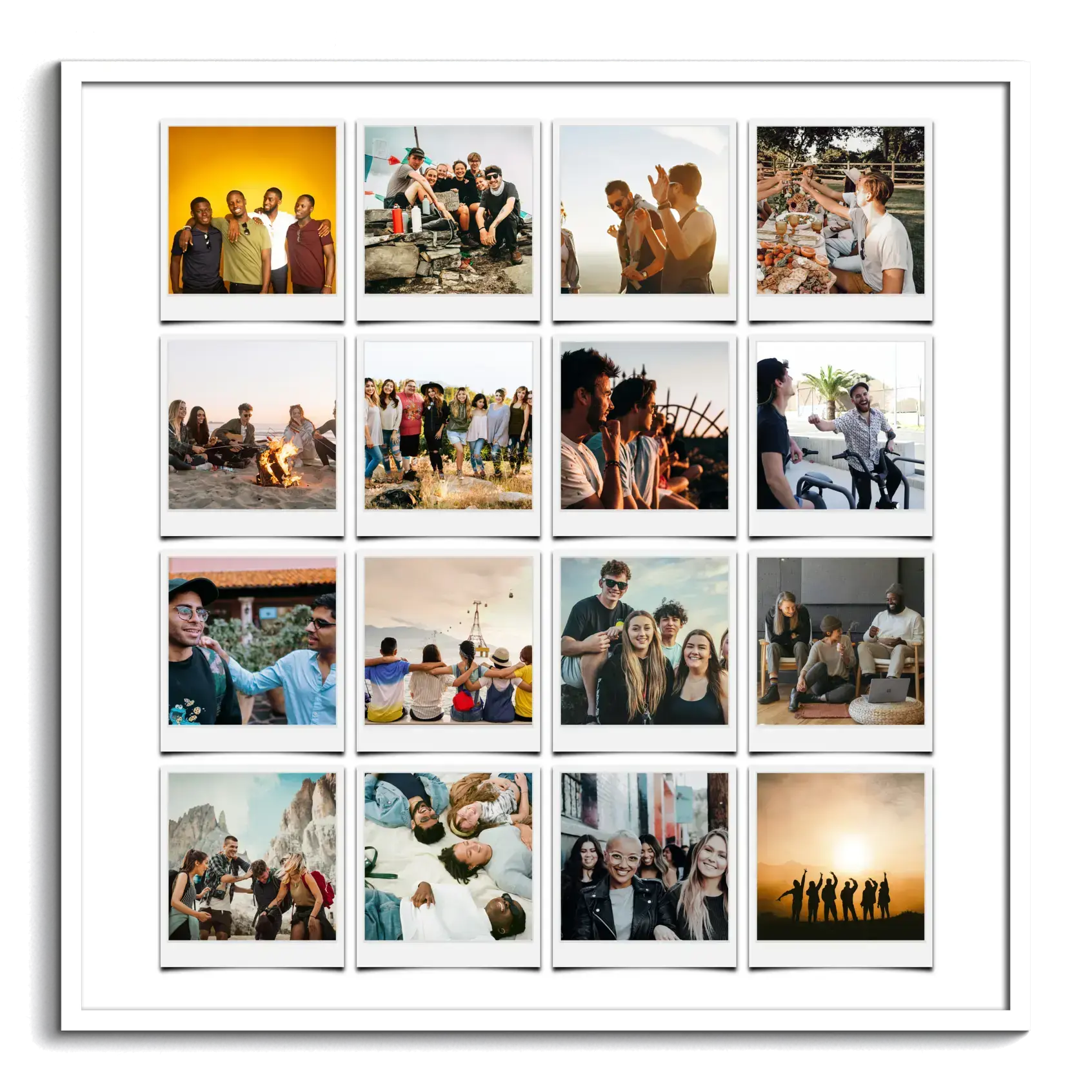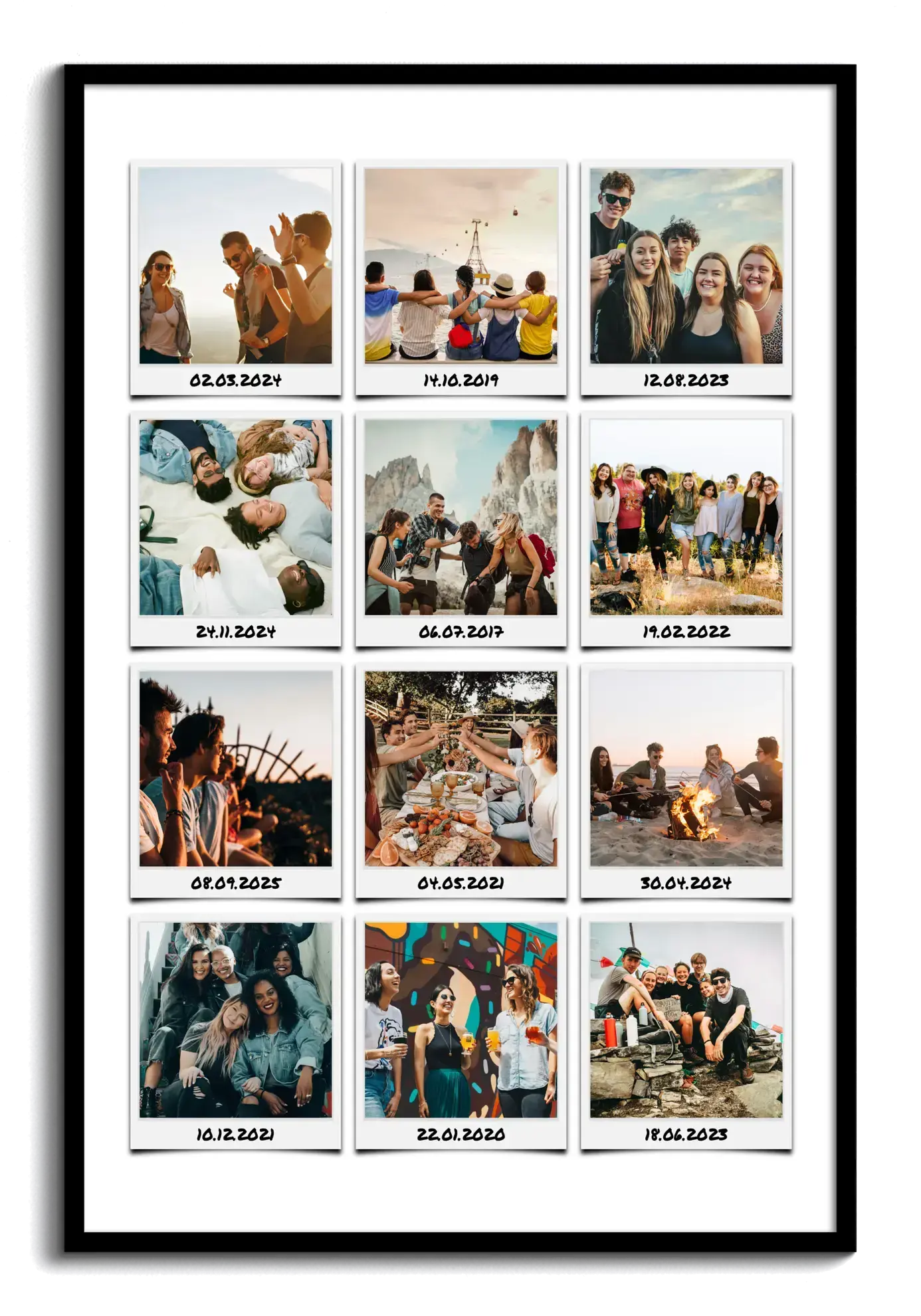 Captura momentos únicos con amigos en una collage polaroid con textos personalizados.